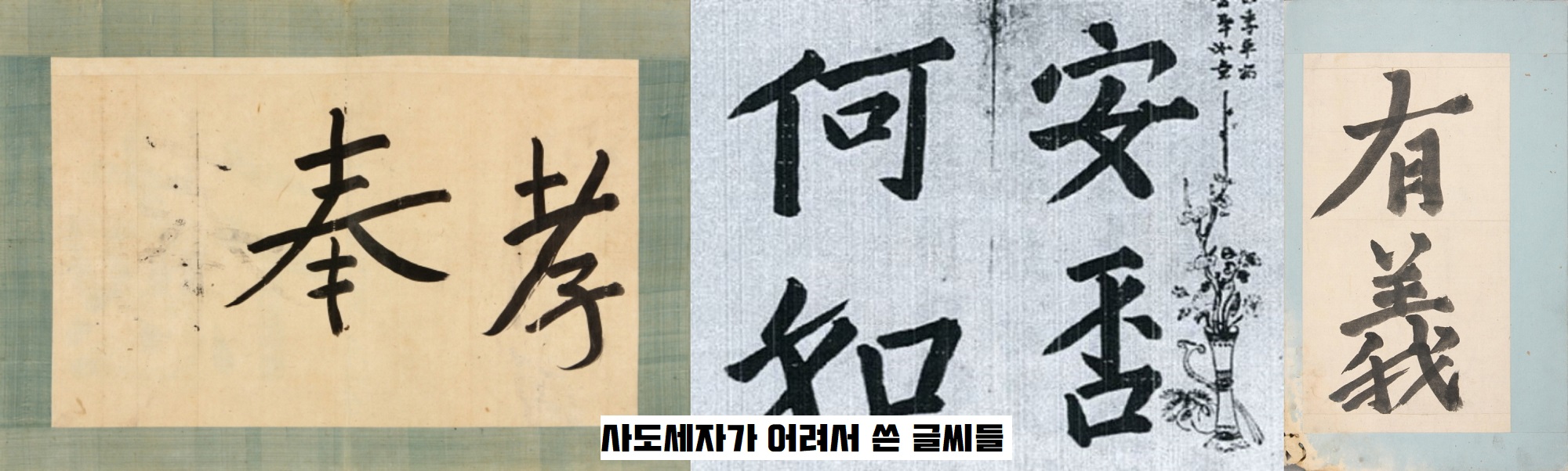 내시가 종이 2장과 함께 붓과 벼루를 가져왔고, 사도세자가 붓을 잡고 글씨를 썼습니다.