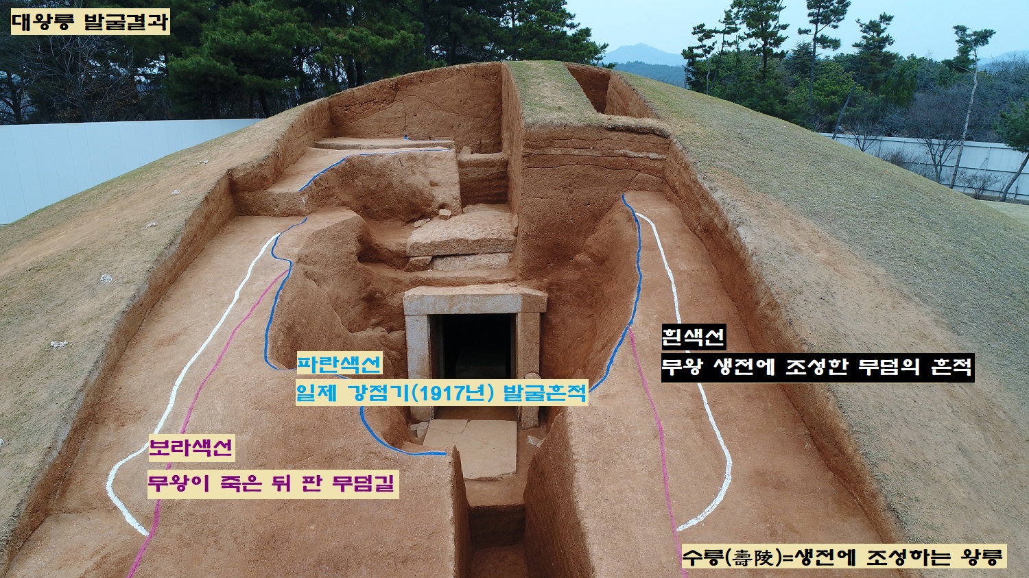 물론 대왕릉이 무왕이 승하한 641년 조성된 것이 아니라 일찍 죽은 부인(선화공주?)의 곁에 묻이기 위해 미리 조성한 수릉(壽陵·임금이 죽기 전에 미리 만들어 두는 무덤)이라는 발굴결과에 대한 해석이 나왔구요.