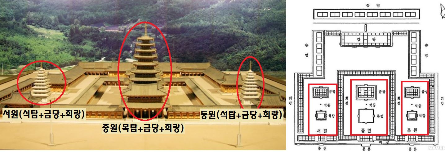 그럼 어떤 해석이 가능할까요. ‘사택적덕의 딸이 창건했다’는 명문 사리기는 그중 서탑에서 나왔죠. 그럼 ‘사택씨’가 서원(서탑+강당)을 창건한 왕비라면, ‘중원’과 ‘동원’은 선화공주를 비롯한 다른 왕비들이 세웠다는 추론도 가능합니다.