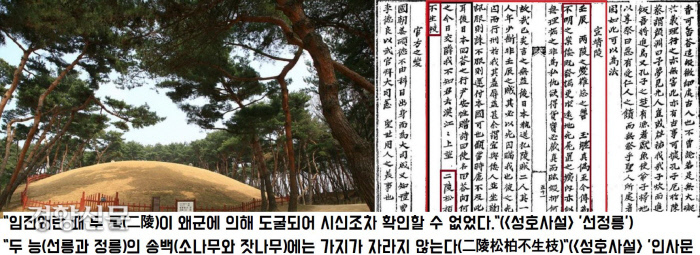 ‘이릉의 송백을 잊지 말라’고 신신당부한 시인데요. 즉 ‘왜적이 훼손한 이릉(선릉과 정릉)에서는 소나무와 잣나무 가지가 자라지 않는다(二陵松柏不生枝)’는 회한에 가득찬 내용입니다.