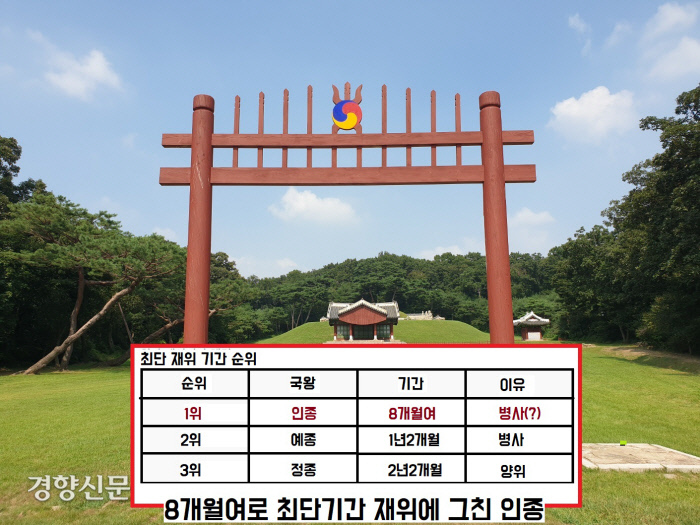 인종은 조선시대 임금 가운데 ‘최단 기간 재위’ 한 분입니다. 9개월(1544년 11월20~1545년 7월1일)도 채우지 못하고 승하했습니다. 기막힌 일화가 있습니다. 장경왕후가 1515년(중종 10) 2월 아들 인종을 낳고 산후병으로 승하하기 직전에 홀연히 앉아 손수 유언장을 써내려갔습니다.