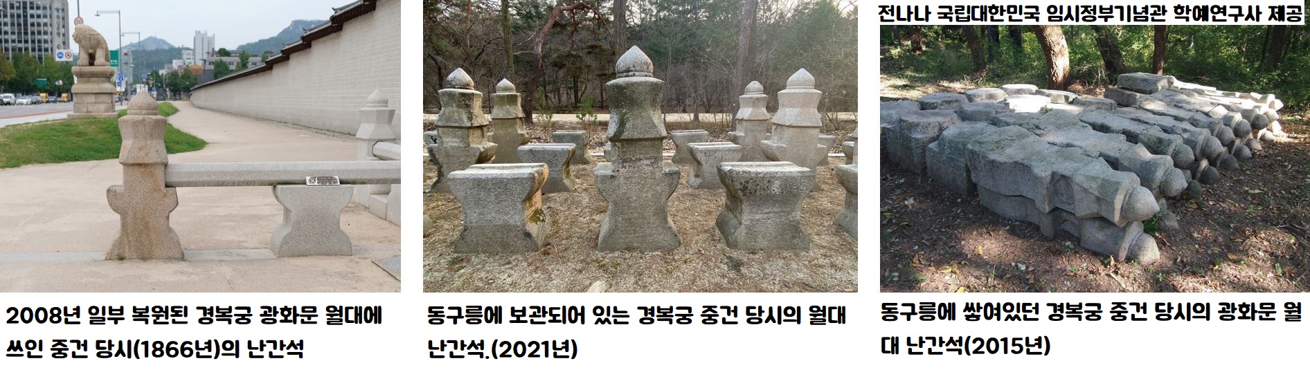 한마디로 말하면 광화문 월대에 쓰인 부재가 극히 일부를 제외하고는 거의 대부분 동구릉으로 해체 이전된 것이다.