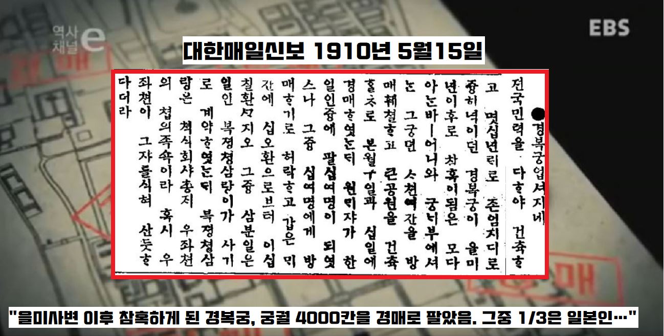 임진왜란 같은 전란과 잦은 화재 등으로 불에 타거나 훼손된 뒤 다시 걸리기를 반복했습니다. 경복궁 중건(1865~68) 등으로 겨우 제자리를 찾게 됐지만, 그것도 잠시였죠. 고종이 을미사변(1895년) 후 자리를 비운 경복궁은 급격하게 원형을 잃게돼죠. 1907년 창경궁에 동·식물원과 박물관이 조성, 1910년 강제합병 직전에는 궁궐 불용건물의 자재가 매각돼죠. 1915년 경복궁에서 열린 조선물산공진회, 1917년 창덕궁 내전 일곽 화재 등 갖가지 이유로 조선의 궁궐 건물은 무자비하게 철거돼죠.