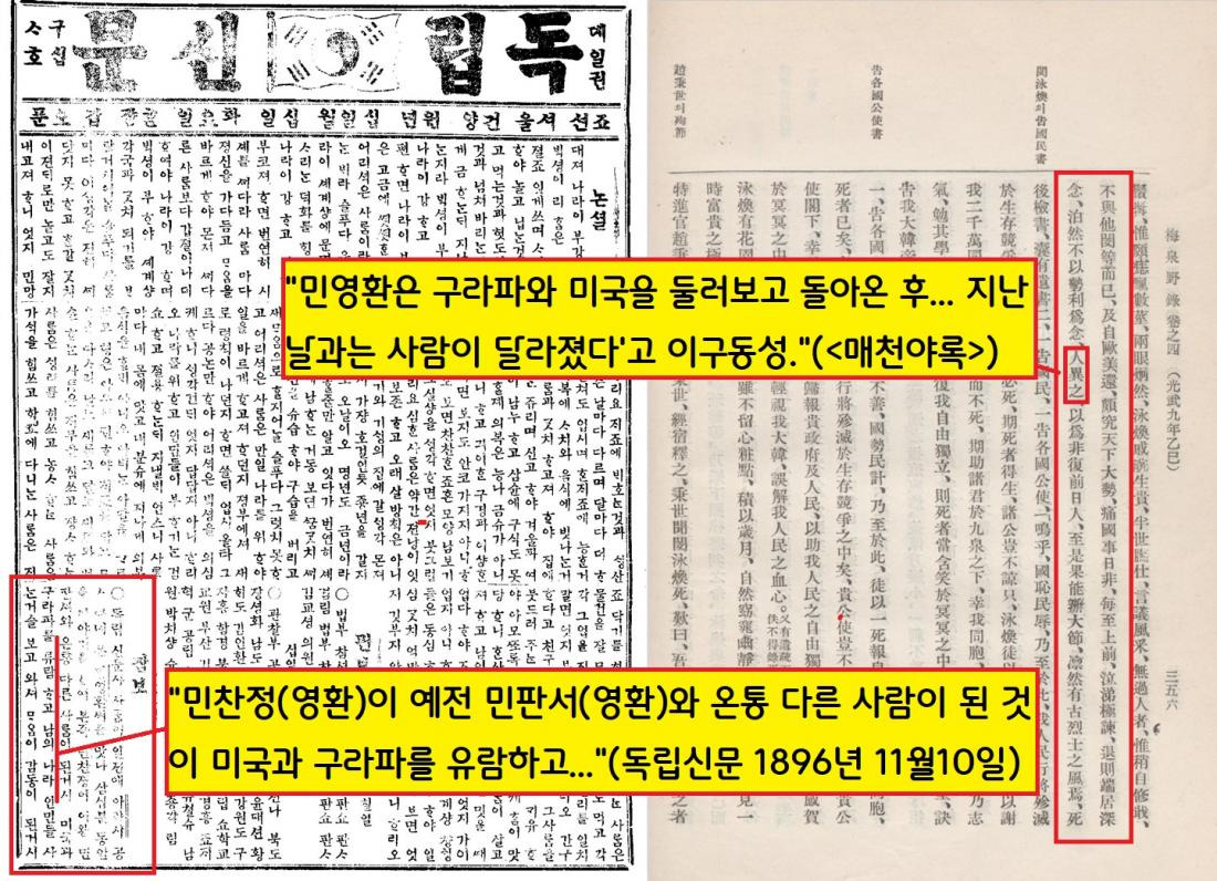 민영환은 독립신문과의 귀국 인터뷰에서 “조선도 (외국처럼) 개혁을 하지 않고는 나라가 부지할 수 없다는 것을 믿어야 한다”고 설파했다.