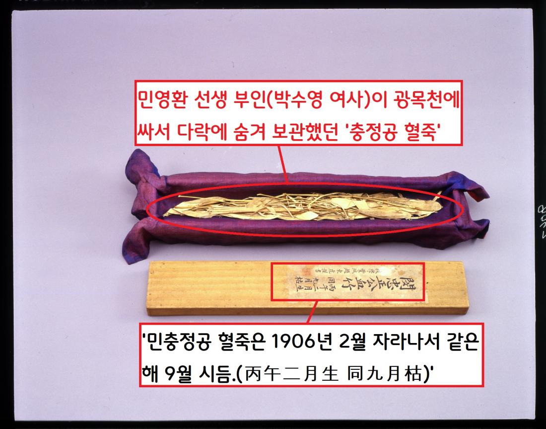 사람들은 민영환의 대나무를 ‘혈죽’이라 했다. 박은식(1859~1922)은 ‘혈죽기’에서 ‘이 대나무는 민충정공의 피’라 규정했다.”(대한매일신보 1906년10월17일)