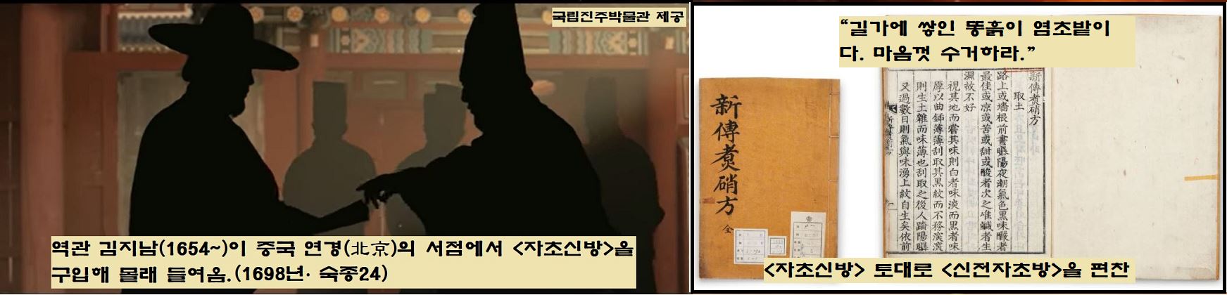 이 책에 적힌 ‘염초 구하는 비법’이 무엇일까요. 바로 길가에 널려있는 흙에서 염초의 원료를 찾을 수 있었다는 겁니다. 그것은 다름아닌 ‘똥흙’이었습니다. 허무개그 같죠. 아닙니다.