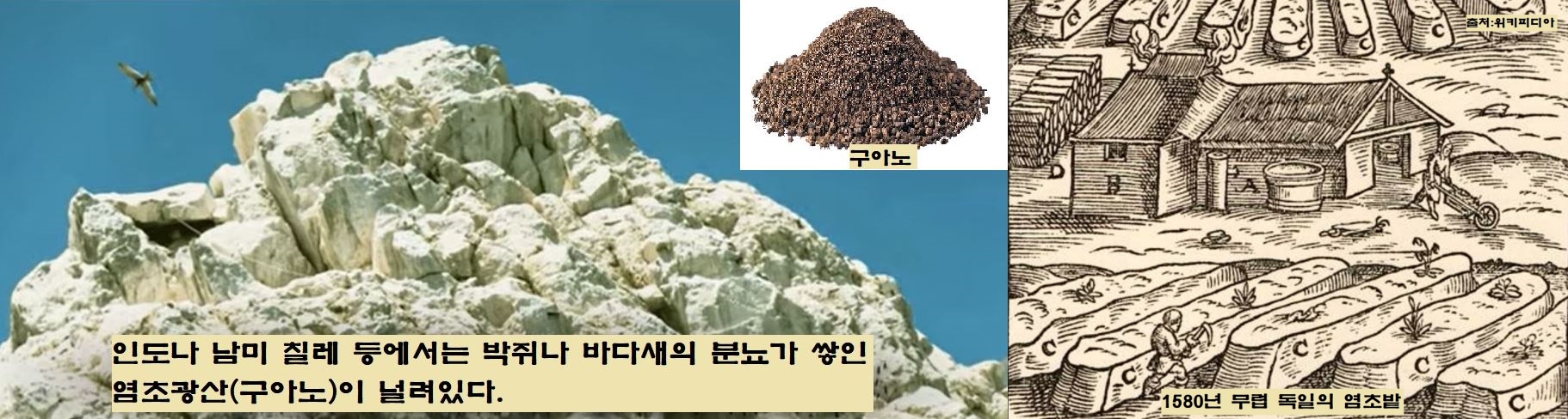그러나 화약 제조를 위해 70% 이상 드는 염초는 구하기 어려웠습니다. 인도나 남미 같은 곳에서는 새나 박쥐 등의 분뇨가 광산처럼 널려있어서 구하기 어렵지 않았는데요. 유럽에서도 인분을 쌓아둔 염초밭을 조성해서 질산염을 대량 생산했습니다.