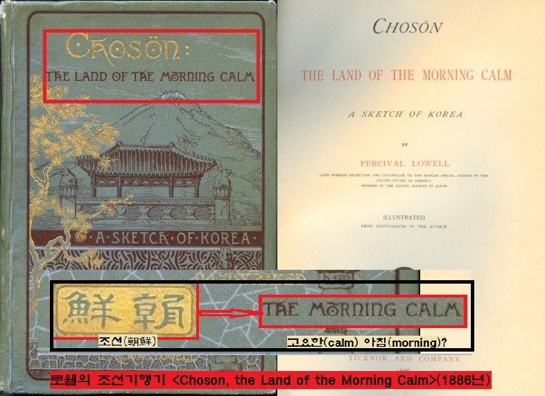 이것은 조선을 잠깐 방문한 퍼시벌 로웰(1855~1916)이 1885년에 쓴 책 제목(‘Choson the land of the morning Calm’)에서 비롯된 겁니다. 국호에 ‘아침 조(朝)’가 들어가 있으니 로웰이 ‘Morning’으로 표현할 수는 있겠죠. 그러나 헐버트는 “‘밝다. 아름답다. 깨끗하다’는 뜻의 선(鮮)자를 왜 ‘고요하다’는 뜻의 ‘Calm’으로 해석했는지 알 수 없다”고 했습니다.
