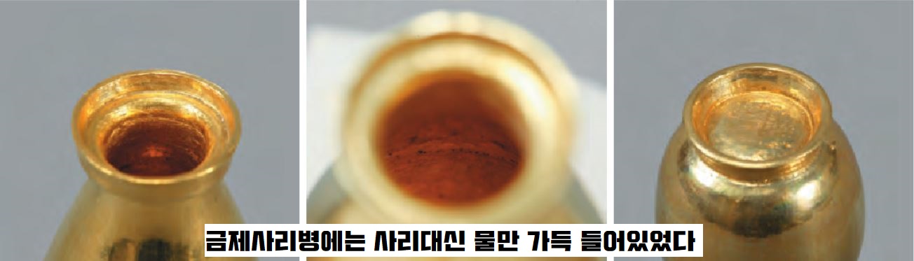 국립문화재연구소가 혹시 사리가 녹았을 수도 있는 이 사리병 속 물을 분석해봤습니다. 그랬더니 그냥 결로현상 때문에 생긴 물(HO2)이었습니다. 그럼 처음부터 사리를 넣지 않았다는 얘기가 아닙니까.