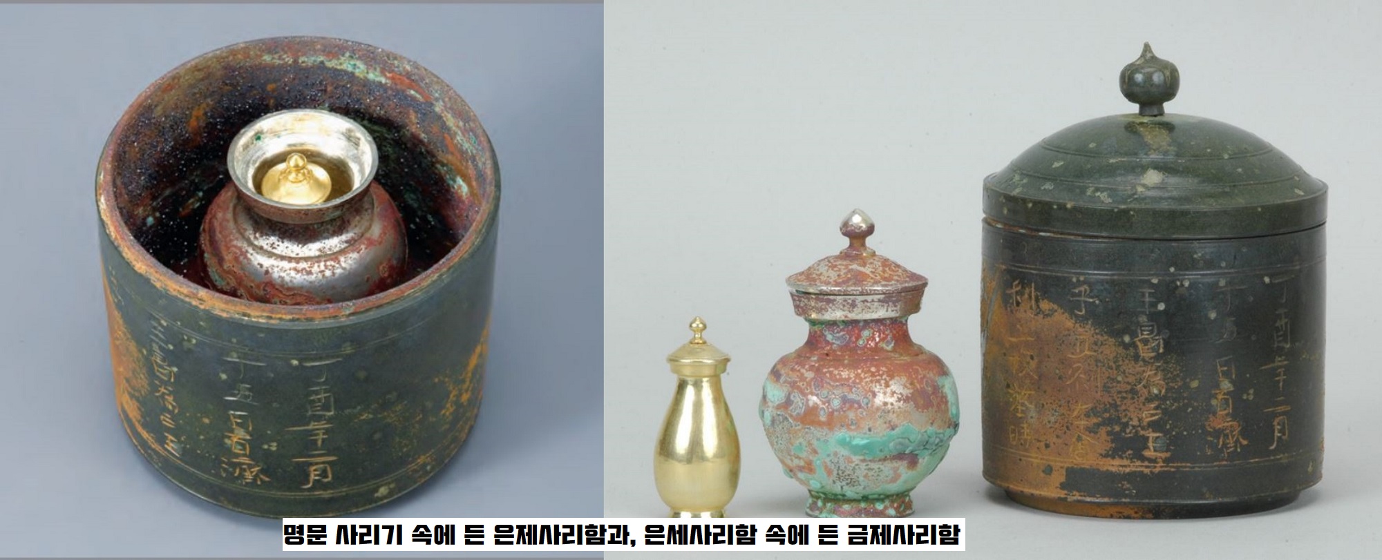 우선 명문 사리함 안에는 은제사리병(외병ㆍ6.8×4.4㎝)이 있었고, 다시 그 안에 금제사리병(내병ㆍ4.6×1.5㎝)이 들어있었는데요. 둘 다 순금(98% 이상)과 순은(99%)이었습니다. 사리함-외함(은제)-내함(금제) 등 3중 세트로 이뤄졌고, 연대와 내용이 분명한 삼국시대 최고(最古)의 사리기인 셈입니다. 당연히 국보로 지정됐죠.