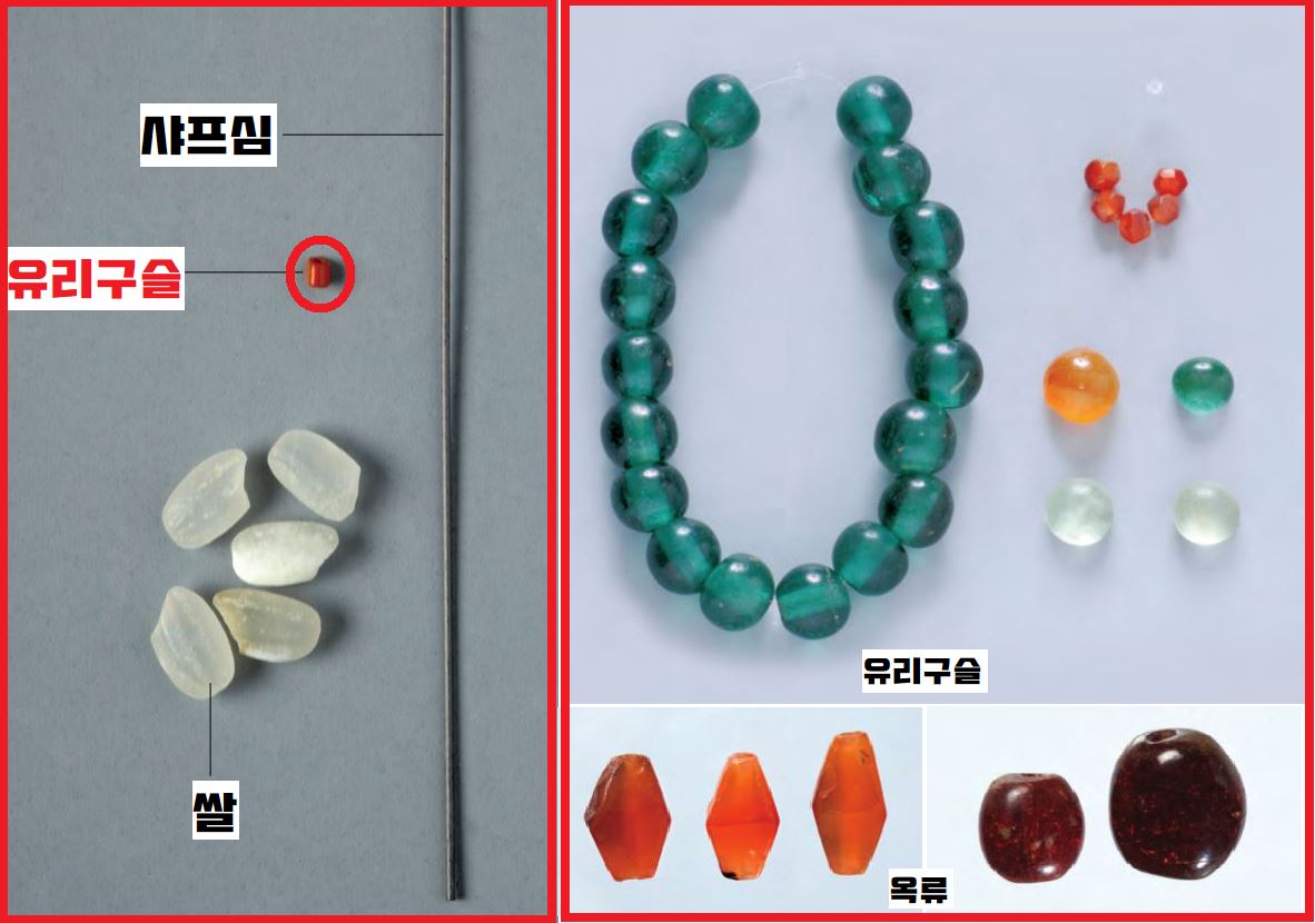 공양품 가운데는 굽은옥과 대추옥, 비녀, 진묘수형 패식 등이 출토됐습니다. 쌀알보다 훨씬 작은 구슬에 샤프심보다 약간 작은 구멍을 뚫은 초절정 정밀극세공을 자랑하는 것도 있습니다.