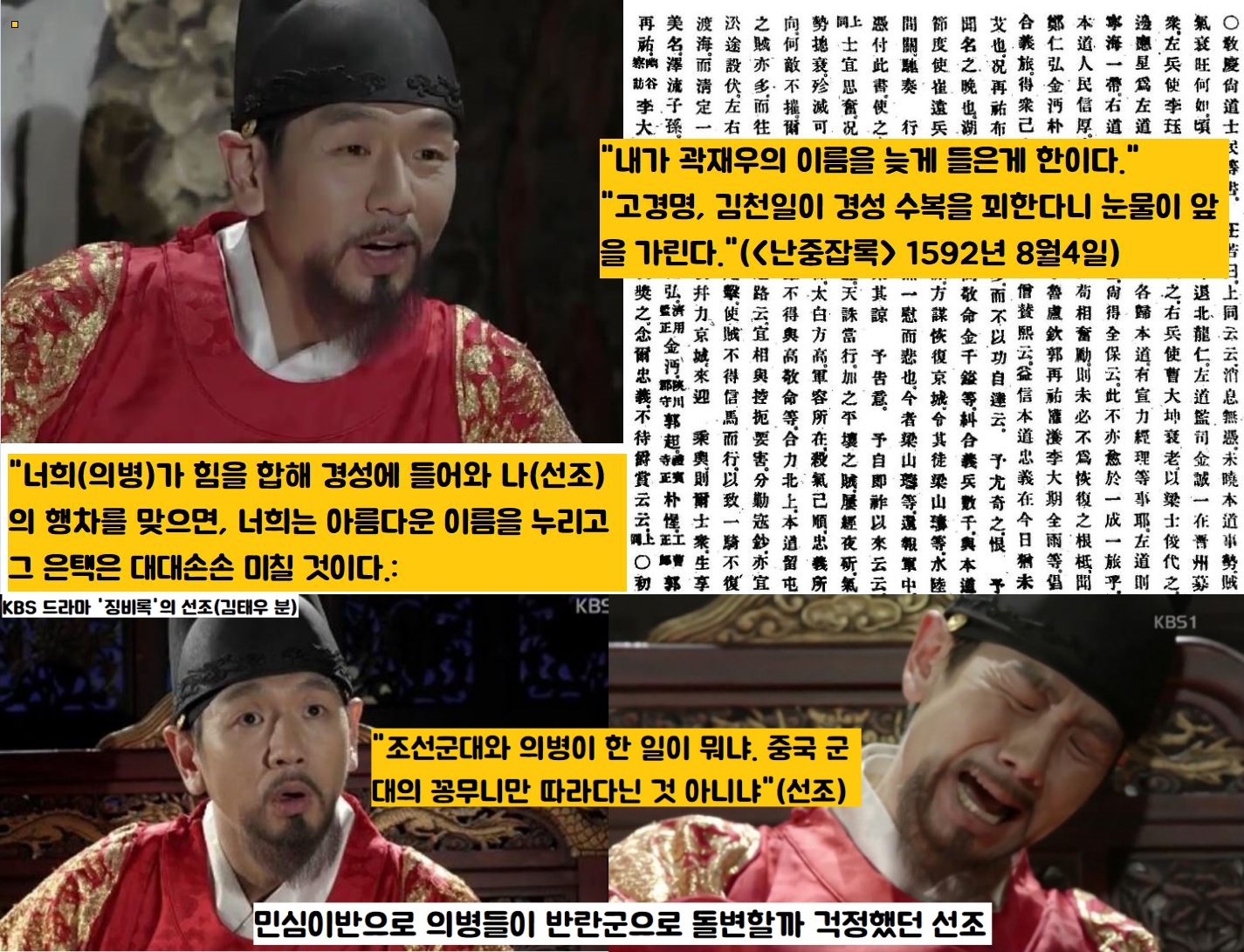 이후 여러 차례 조정에 나와 출사하라는 명령에 곽재우 장군의 언급이 심금을 울리죠.