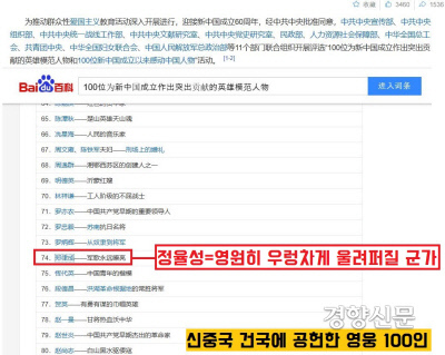 정율성은 2009년 중국의 건국 60주년 행사에서 ‘신중국 건국에 공헌한 영웅 100인’으로 선정되었다.(출처:바이두)