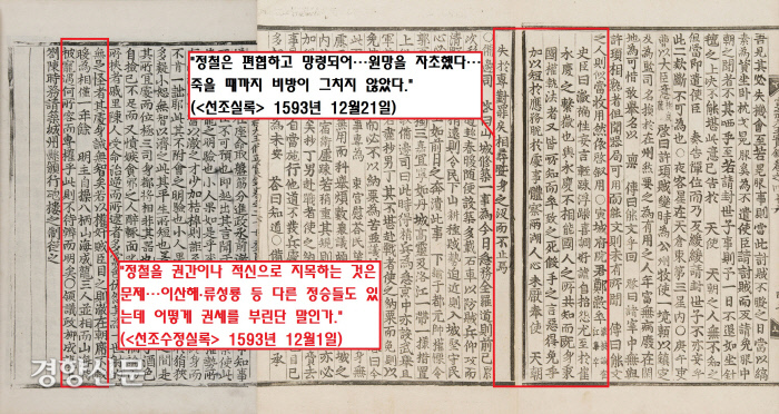 “정철을 권간이나 적신으로 지목하는 것은 문제…이산해·류성룡 등 다른 정승들도 있는데 어떻게 권세를 부린단 말인가.”(<선조수정실록> 1593년 12월1일)