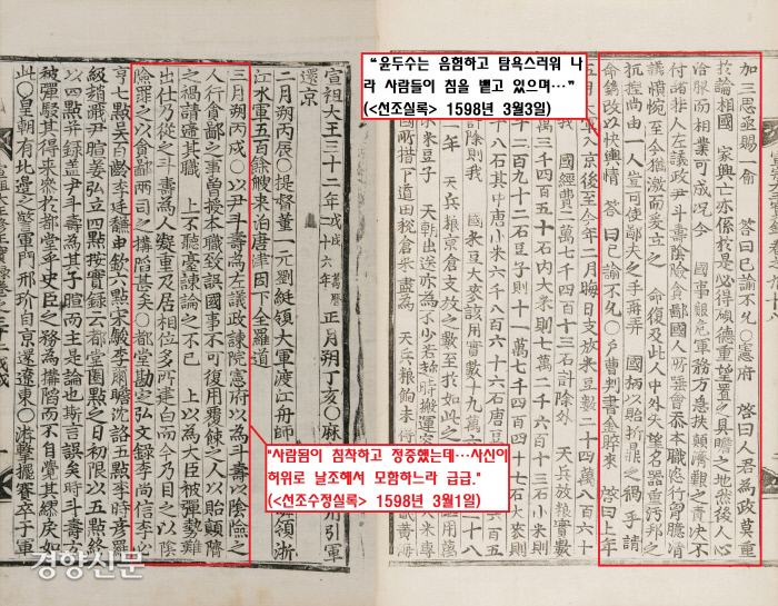 우선 <선조실록>과 <선조수정실록>을 볼까요.