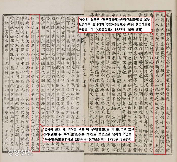 이러한 주묵사의 정신은 훗날 <현종실록>과 <현종개수실록>, <숙종실록>과 <숙종보궐정오실록>, <경종실록>과 <경종수정실록> 등의 편찬 때도 이어집니다.