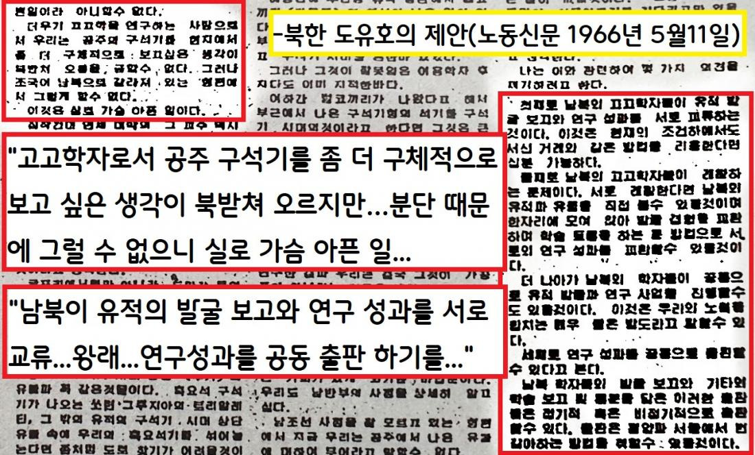 북한의 대표 고고학자 도유호(1905~1982?)가 “남조선 구석기 시대 유물 발견을 계기로 상호 교류하자”고 제안한 것이다.