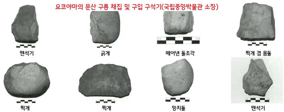 이 가운데 ‘문산 8점’(찍개 4점, 뗀석기 2점, 몸돌 1점, 망치돌 1점 등)이 문산의 구릉과 잡화점에서 채집·구입한 구석기였던 것이다. ‘부싯돌용 도구’가 아니고…. 그런데 이 구석기들은 훗날 파주 주월리·가월리·금파리·전곡리 등 임진강·한탄강 주변에서 수없이 출토된 것과 매우 흡사하다. 결국에서 요코야마가 채집·구입한 유물은 모두 임진강·한탄강변에 살았던 고인류의 도구였다. 그러나 요코야마는 그것이 구석기인줄도 모르고 흘려버렸다.
