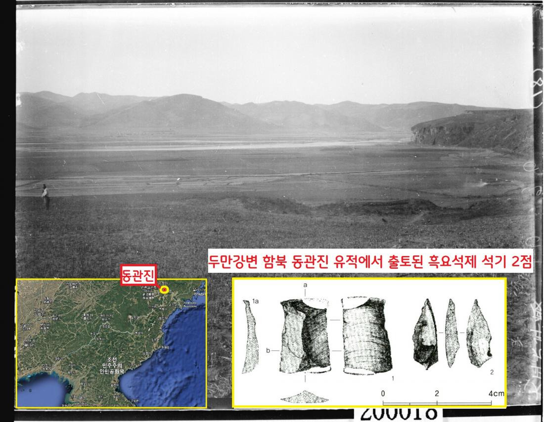 1935년 두만강변인 함북 종성 동관진에서 구석기로 추정되는 흑요석제 2점이 확인됐다. 1940년 이 유적의 발굴결과가 학계에 보고됐다.|국립중앙박물관 자료·장용준 국립진주박물관장 제공