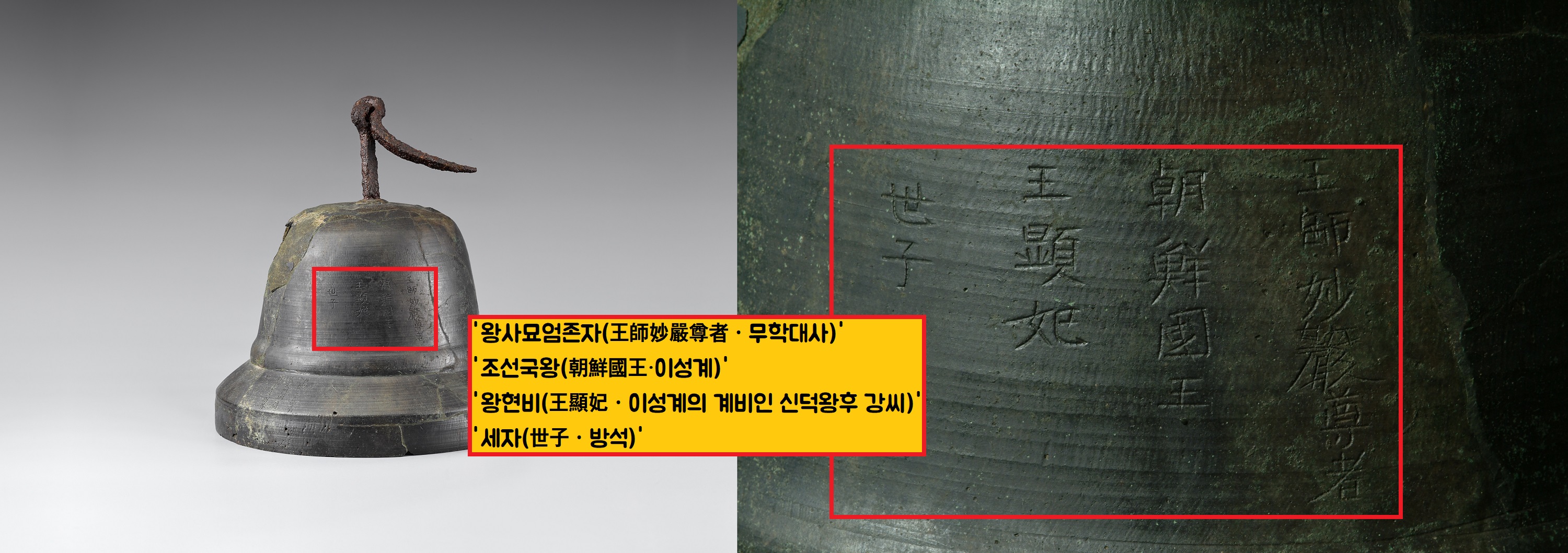 ‘왕사묘엄존자(王師妙嚴尊者·무학대사)’와 ‘조선국왕(朝鮮國王·이성계)’ ‘왕현비(王顯妃·이성계의 계비인 신덕왕후 강씨)’ ‘세자(世子·방석)’…. ‘홍무 27년(1394)’이라는 제작연대까지 보였다.