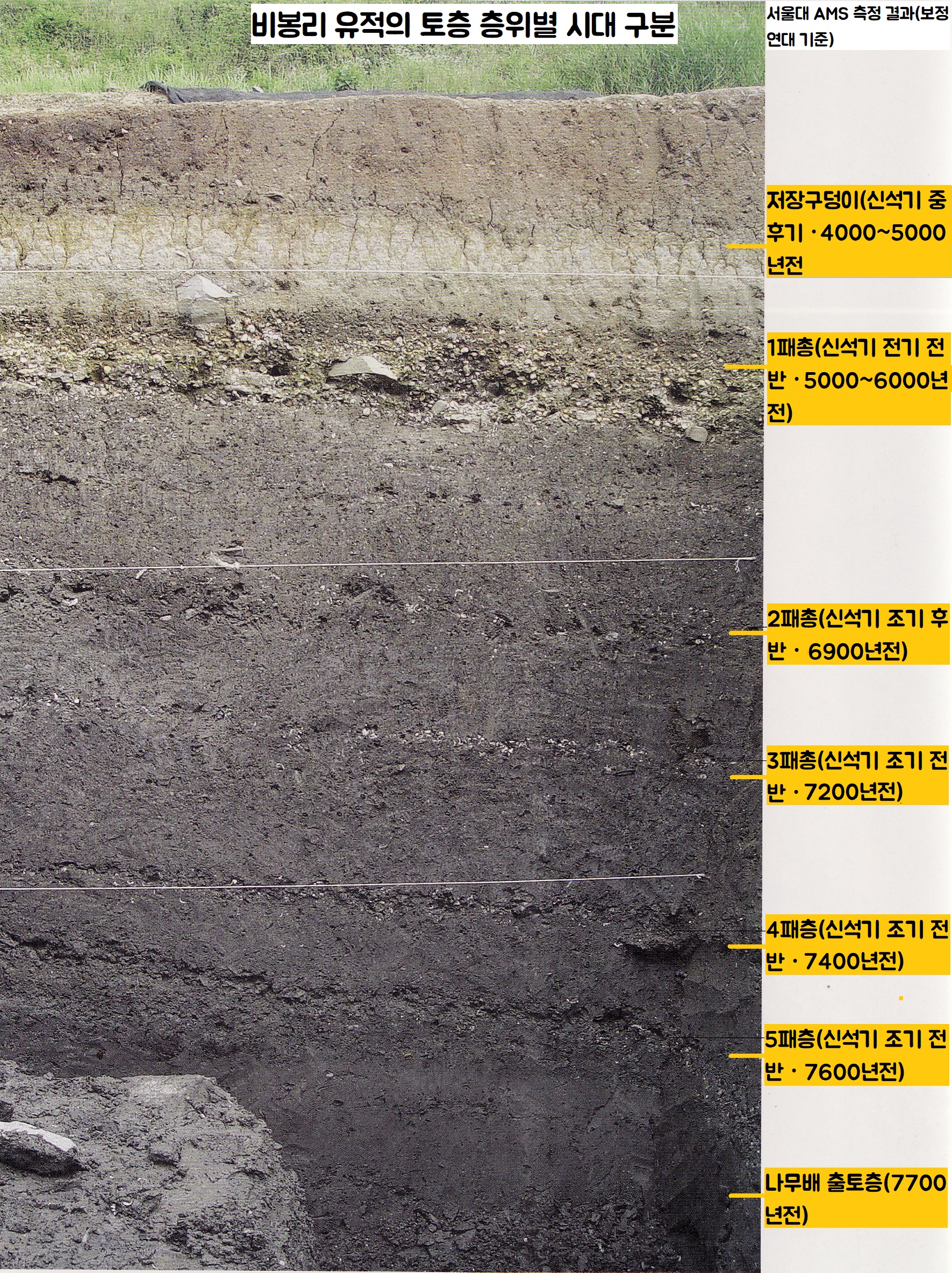 2004년 6월부터 시작된 발굴에서 신석기(8000년전)~청동기시대까지 유물층이 켜켜이 쌓인 조개무지 유적임을 확인했습니다. 나뭇가지, 낚시바늘, 가래와 함께 민물조개인 제첩과 바다에 서식하는 굴, 그리고 상어, 가오리, 복어, 숭어의 뼈가 나왔습니다.