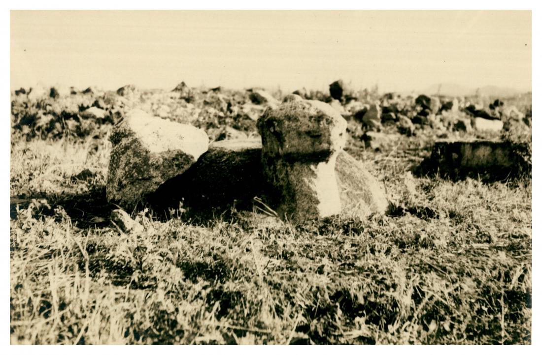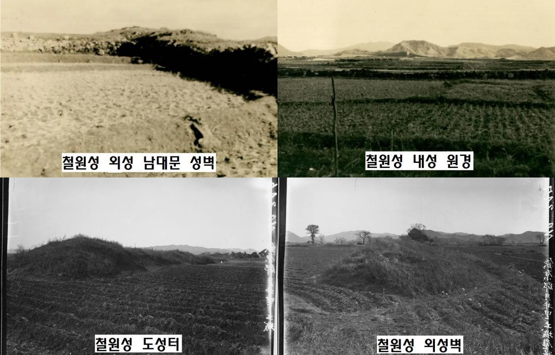 일제강점기 도성의 외성에 남아있었던 귀부(비석받침돌). 철원성의 규모를 짐작케한다. 마을주민들의 증언에 따르면 궁궐터에는 상당수의 석탑과 석등이 방치된채 남아있었다고 한다. |국사편찬위원회 소장