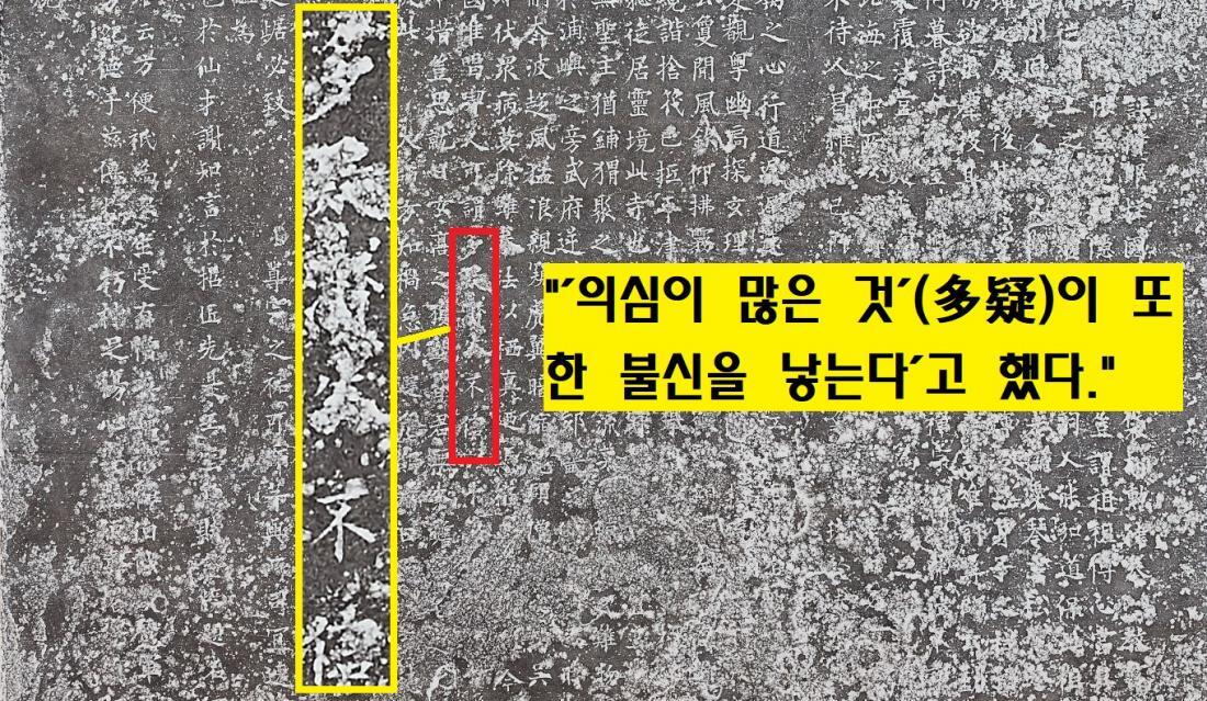 선각대시비문은 “궁예가 의심이 많은 것이 또한 불신을 낳는다고 할 만했다(多疑亦生不信)”고 기록했다. ‘의심이 또다른 불신을 낳았다’는 것은 대사를 향한 의심이 이어졌음을 암시한다. |하일식 교수 판독
