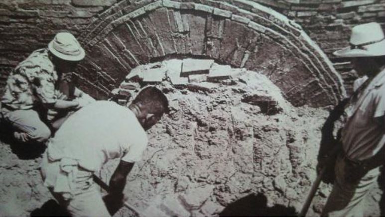=그렇습니다. 이틀 뒤인 77일 오후 3시쯤 김원룡 단장의 지시로 발굴이 시작되었는데요. 1시간쯤 파내려가자 놀라운 광경이 눈앞에 펼쳐졌습니다. 아치형 입구를 벽돌로 가득 쌓아 막아놓은 모습이 보였습니다.