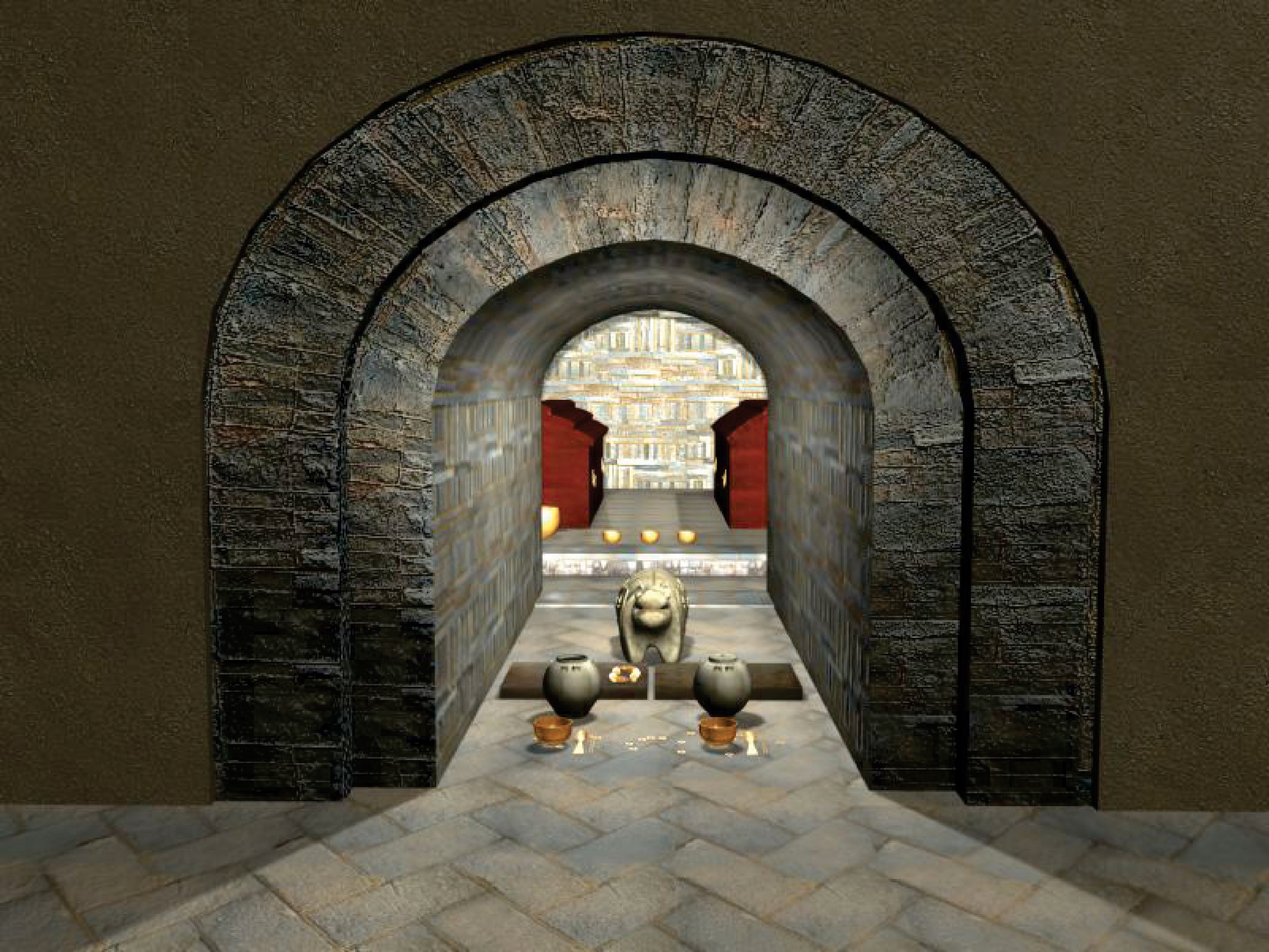 무령왕릉을 디지털로 복원한 모습. 양나라 등 중국 육조시대에 유행한 벽돌무덤이다.