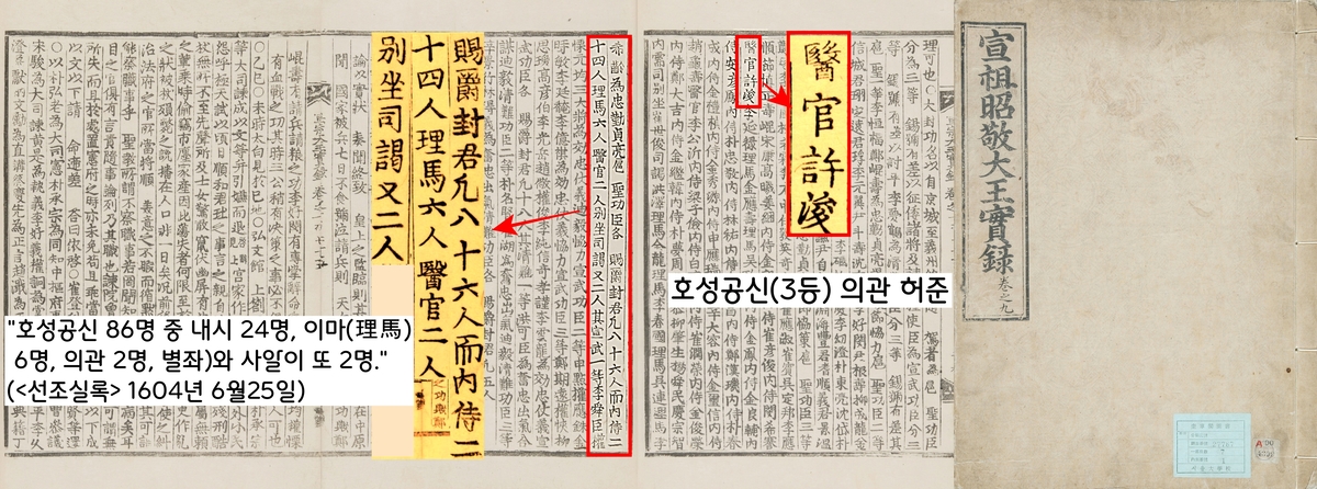 ‘호성공신’은 의주로 피란한 선조를 끝까지 호종했던 86명이다. 이들 가운데 ‘허준 등 의관 2명, 내시 24명, 마부 및 마의 6명, 왕명을 전달하는 별좌 및 사알 2명’도 포함됐다.
