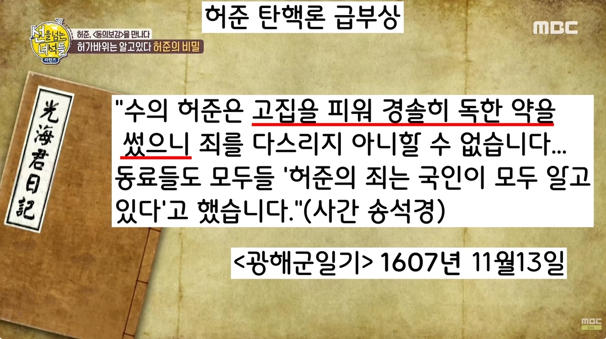 광해군이 허준을 석방하자 “허준의 죄상은 임금을 시해한 것과 같다”느니, “석방 명령을 거두어 달라”느니 하는 비판이 봇물을 이룬다. 그러나 광해군은 꿈쩍도 하지 않았다.
