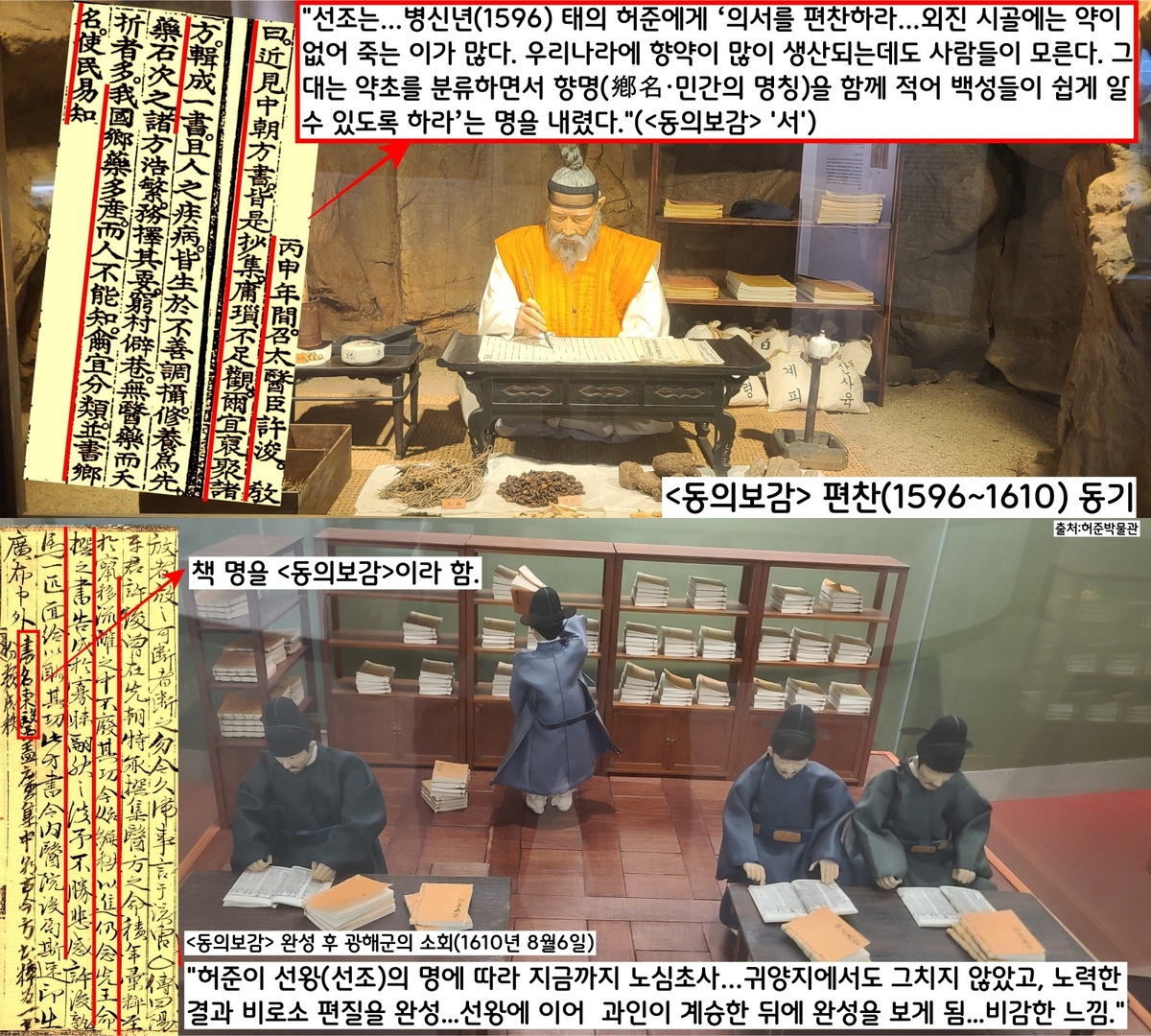 <허준은 “약이 없어 죽는 백성들을 구하기 위해 우리나라에서 나는 약초를 향명(鄕名)을 함께 적어 백성들이 쉽게 알 수 있도록 하라”는 선조의 명을 받들어 <동의보감>을 편찬했다. <동의보감>은 1610년 8월6일 14년 만에 완성됐다.