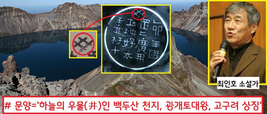 소설가 최인호는 소설 <제왕의 문>에서 # 문양을 ‘하늘의 우물(井)인 백두산 천지’라 풀었다. 그러고는 정복군주 광개토대왕과, 나날이 발전하는 고구려를 상징하는 문양이라 했다.