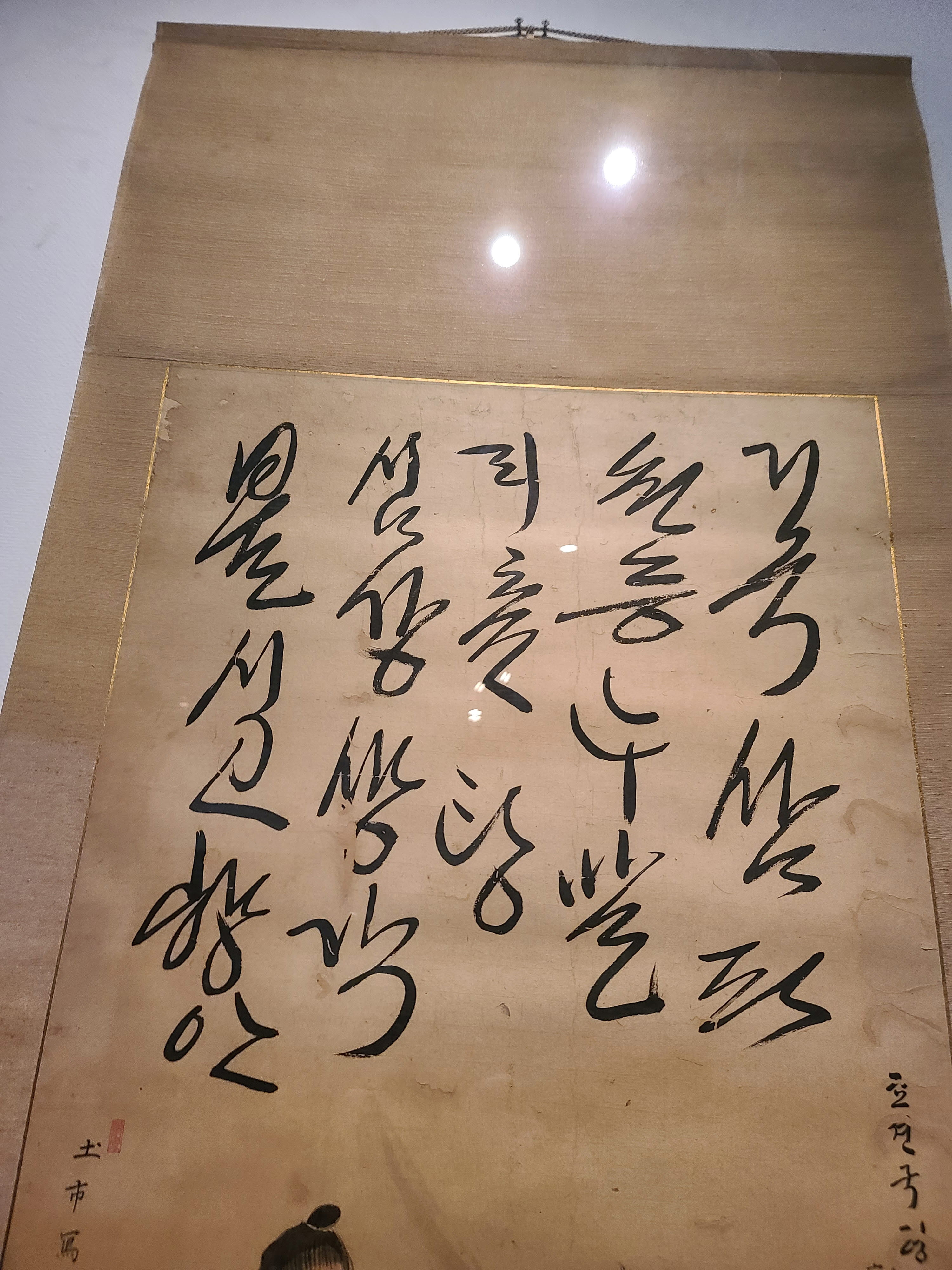 이 작품이 특별전에 출품된 사연이 있다. 대학(평택대)의 일본어과에 재학중이던 학생(장윤화씨)이 일본에 머물던 친구에게서 작품의 존재를 알고서 서예박물관에 연락했다. 마침 특별전을 준비중이던 서예박물관측이 수소문 끝에 후쿠오카(福岡)의 개인사업가가 소장한 작품의 대여전시를 성사시켰다.