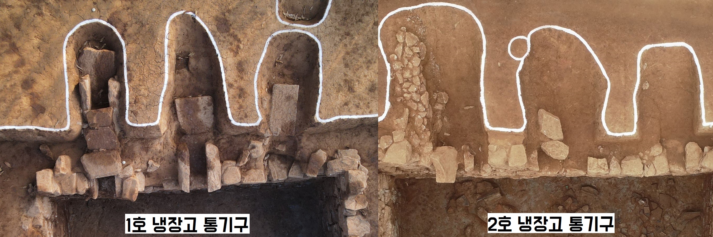 두 유구가 ‘백제판 냉장고’ 였음을 알리는 장치가 또 백미죠. 각 유구의 동쪽 긴 벽 위쪽에 설치된 각 3개씩의 통기구인데요.
