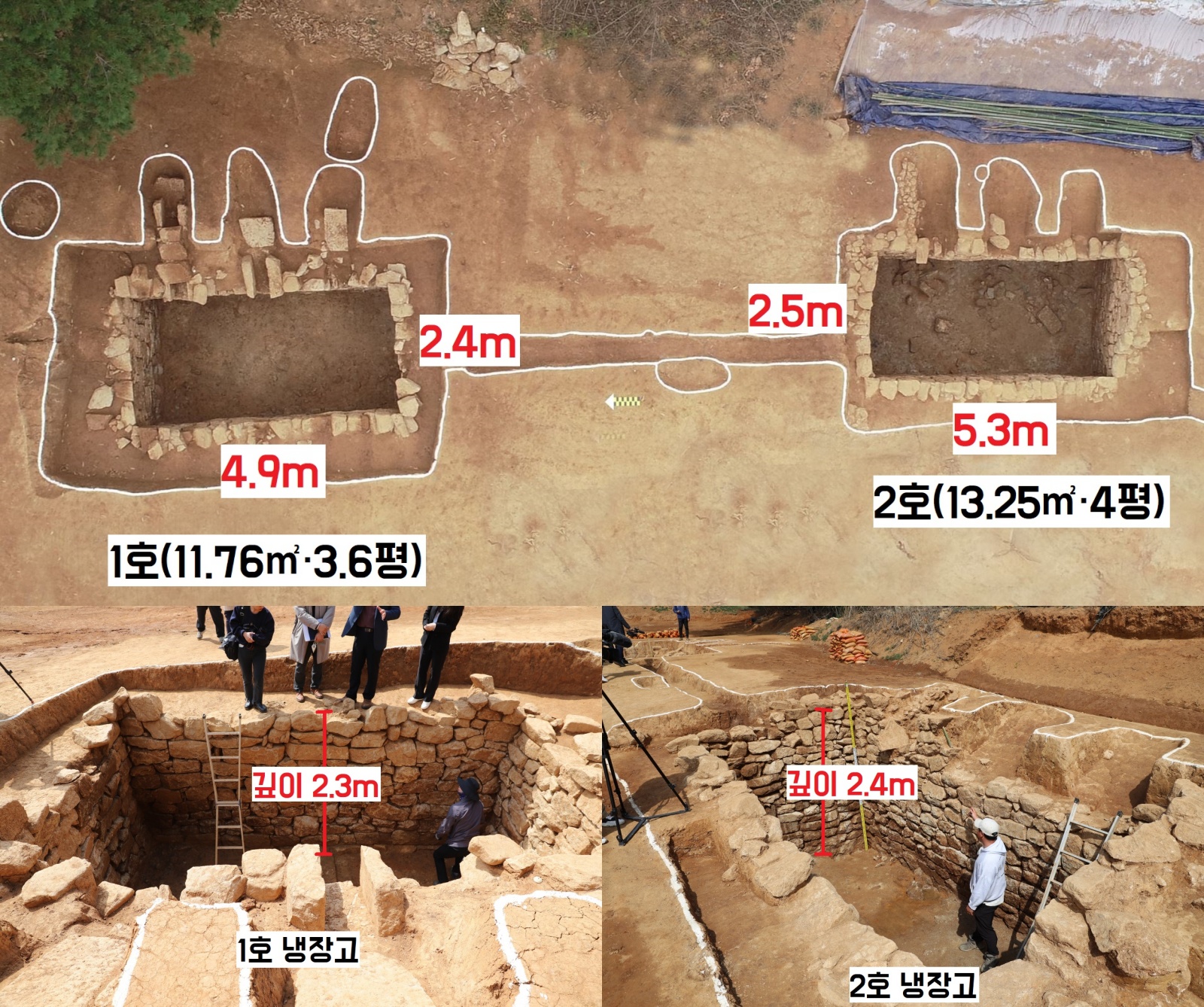 그렇다면 냉장고가 아니라 석빙고(냉동고)일 수도 있지 않을까요. 석빙고에서는 얼음 녹는 물을 빼내는 배수구가 예외없이 보이는데요. 그러나 이번에 확인된 두 유구의 바닥에서는 보이지 않았습니다.