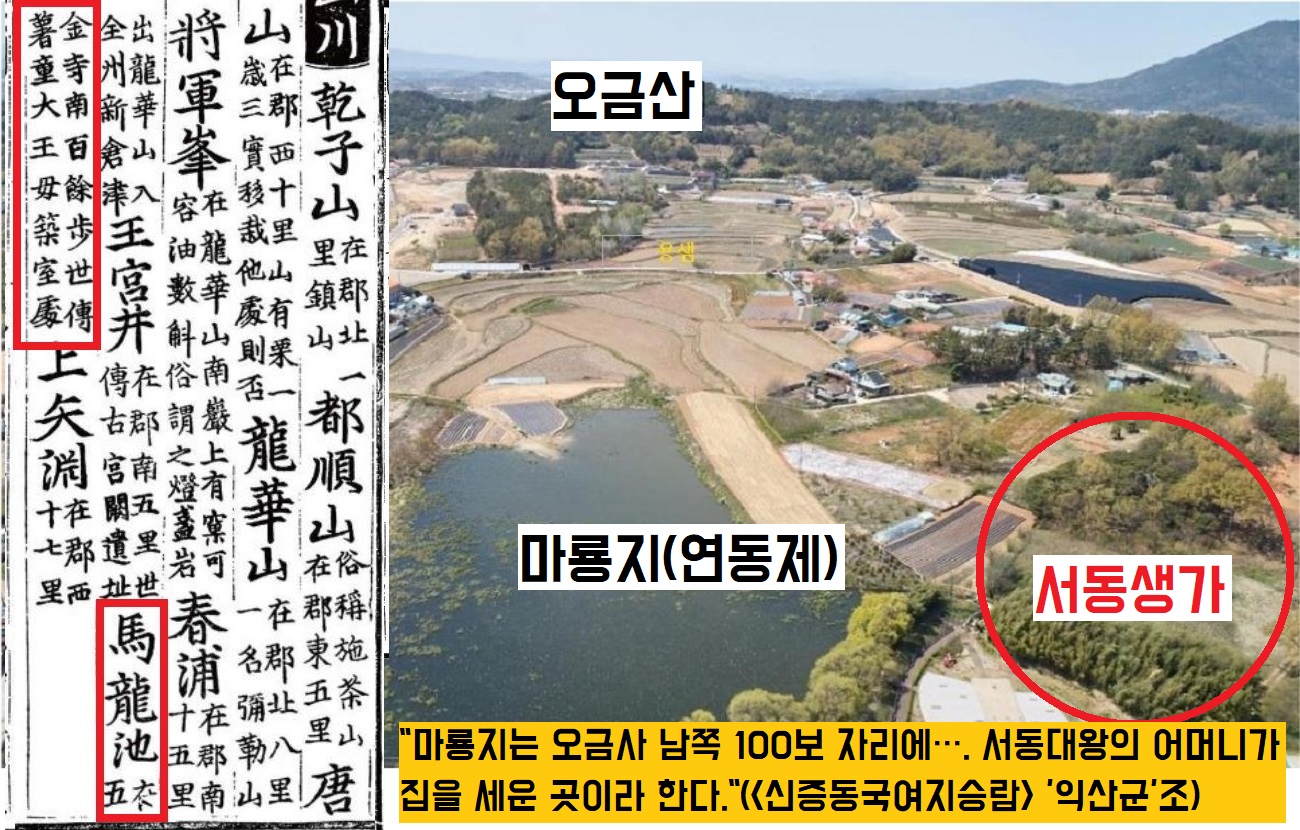 “마룡지(현 연동제 연못)는 오금사 남쪽 100보 자리에 있다. 서동대왕의 어머니가 축실(築室·집을 지은)했던 곳이라 한다.”