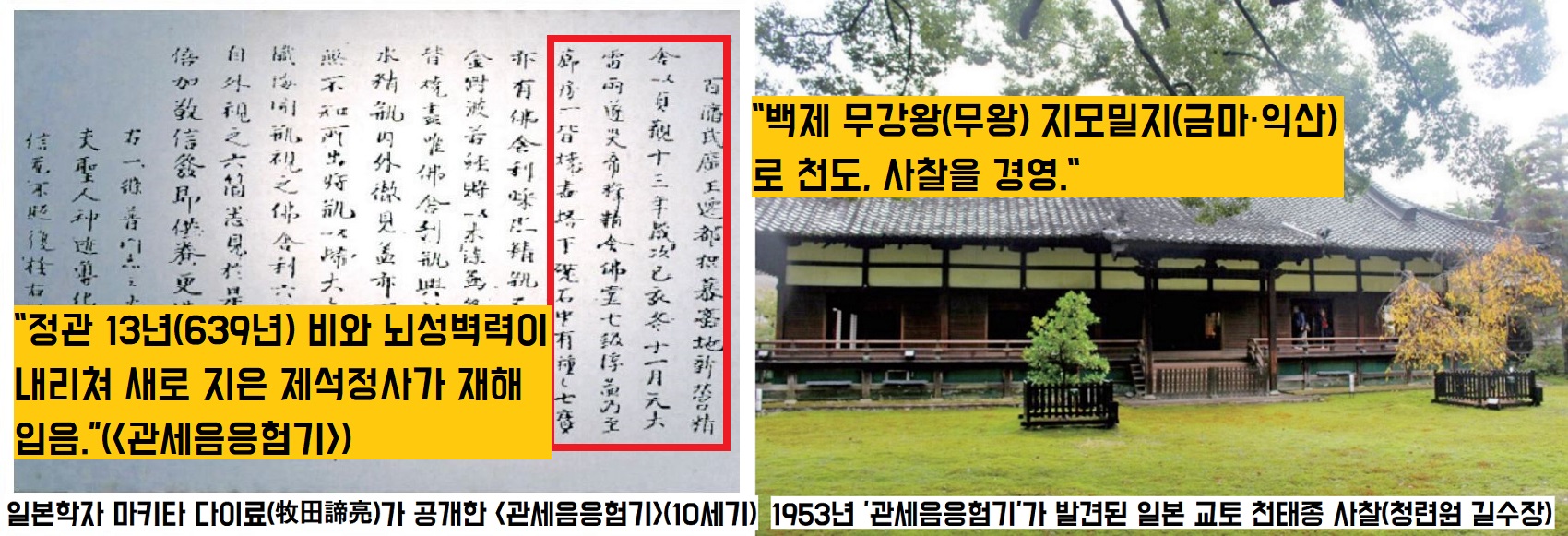 그런데 1970년 마키타 다이료(牧田諦亮·1912~2011) 일본 교토대(京都大)교수가 10세기쯤 편찬된 <관세음응험기>를 찾아냈는데요. 여기에 무왕의 익산천도 기사가 보였습니다.