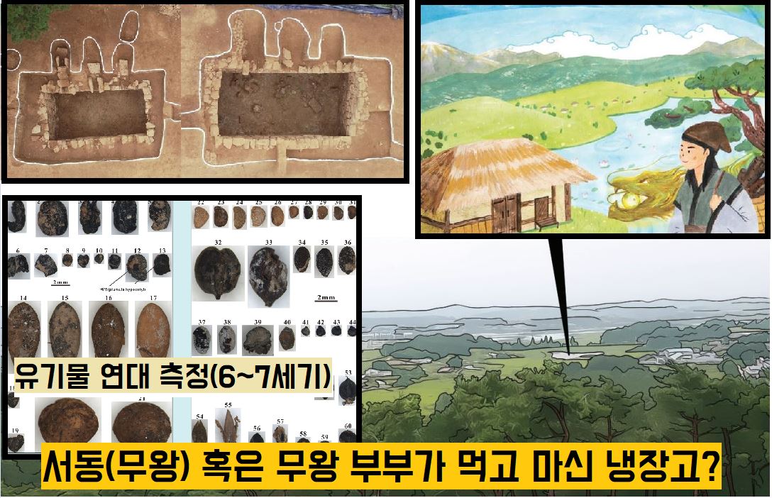 그런데 그 인접지역에서 새롭게 냉장고 시설이 확인된 겁니다. 그렇다면 서동생가와 냉장고 사이에 어떤 연관성을 찾을 수 있는지 궁금하네요. 사실 이번에 확인된 유기물을 대상으로 연대측정을 해보니 6~7세기 정도로 추정되었는데요.