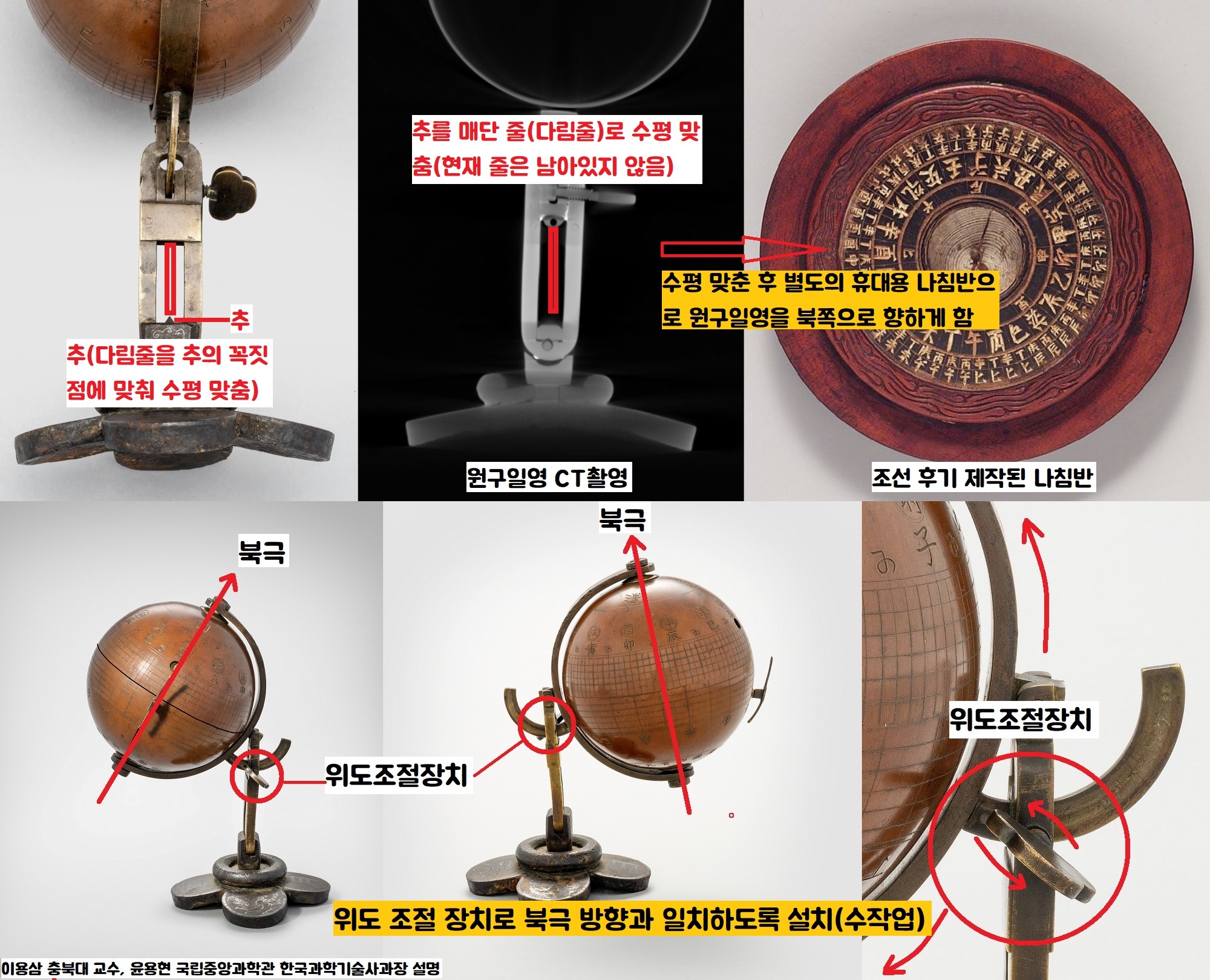 지름 11.2cm, 전체높이 23.8cm 정도 됩니다. 저는 이른바 ‘일영원구’의 환수 소식을 접하고도 정확한 작동원리와 의미를 잘 이해하지 못했는데요. 전공자인 이용삼 충북대 명예교수와 윤용현 국립중앙과학관 한국과학기술사 과장, 그리고 유물의 성분분석을 맡은 권혁남 국립고궁박물관 유물과학부 학예연구관 등의 도움말로 유물의 작동원리와 의미 등을 풀어보겠습니다.
