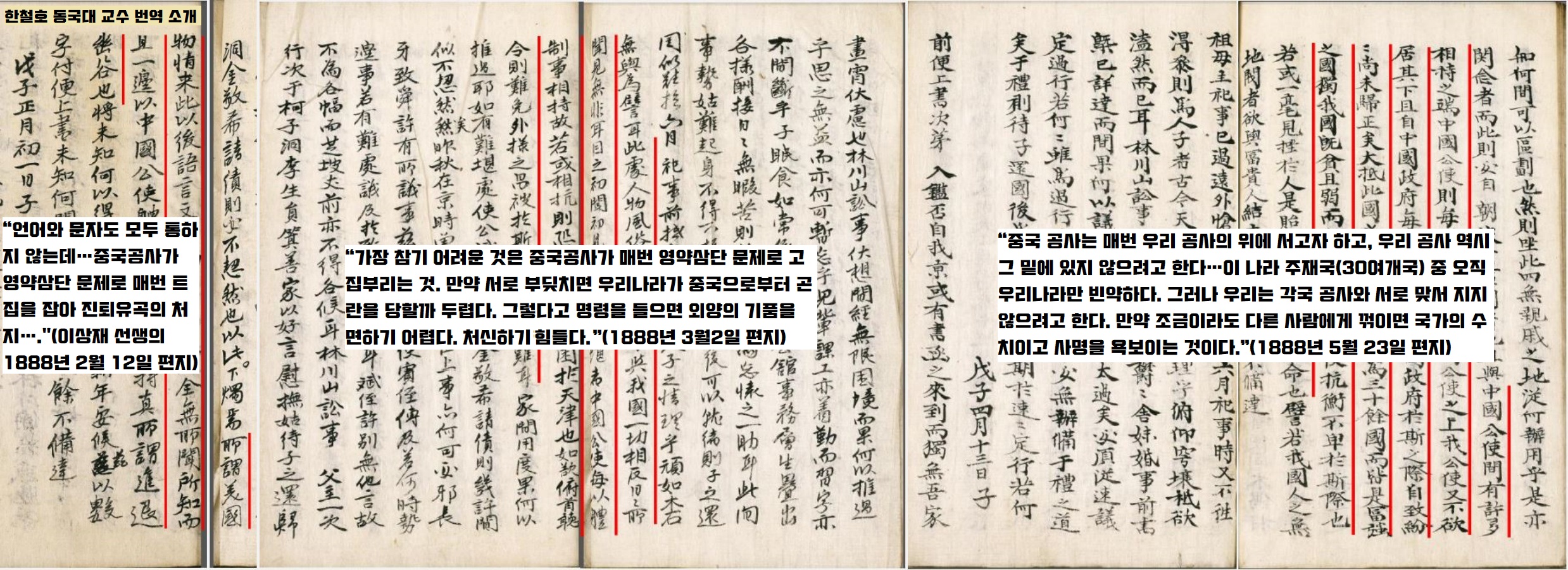 선생이 10개월동안(1888년1~11월) 주미공사관 서기관의 임무를 수행하면서 작성한 업무편람(<미국공사왕복수록(隨錄)>)과, 선생이 주고받은 편지모음집(<미국서간>) 등입니다.