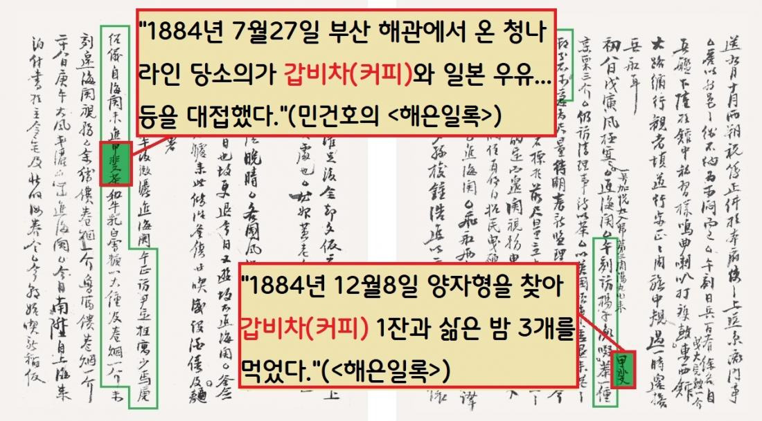 최초로 커피를 마신 조선인은 민건호(1843~1920)라는 자료가 발굴됐다. 부산 해관(세관) 서기였던 민건호는 1884년 7월27일자 일기에서 “청나라 사람인 당소의로부터 갑비차(커피차) 등을 대접받았다”고 기록했다.||부산박물관 소장·국립민속박물관 제공