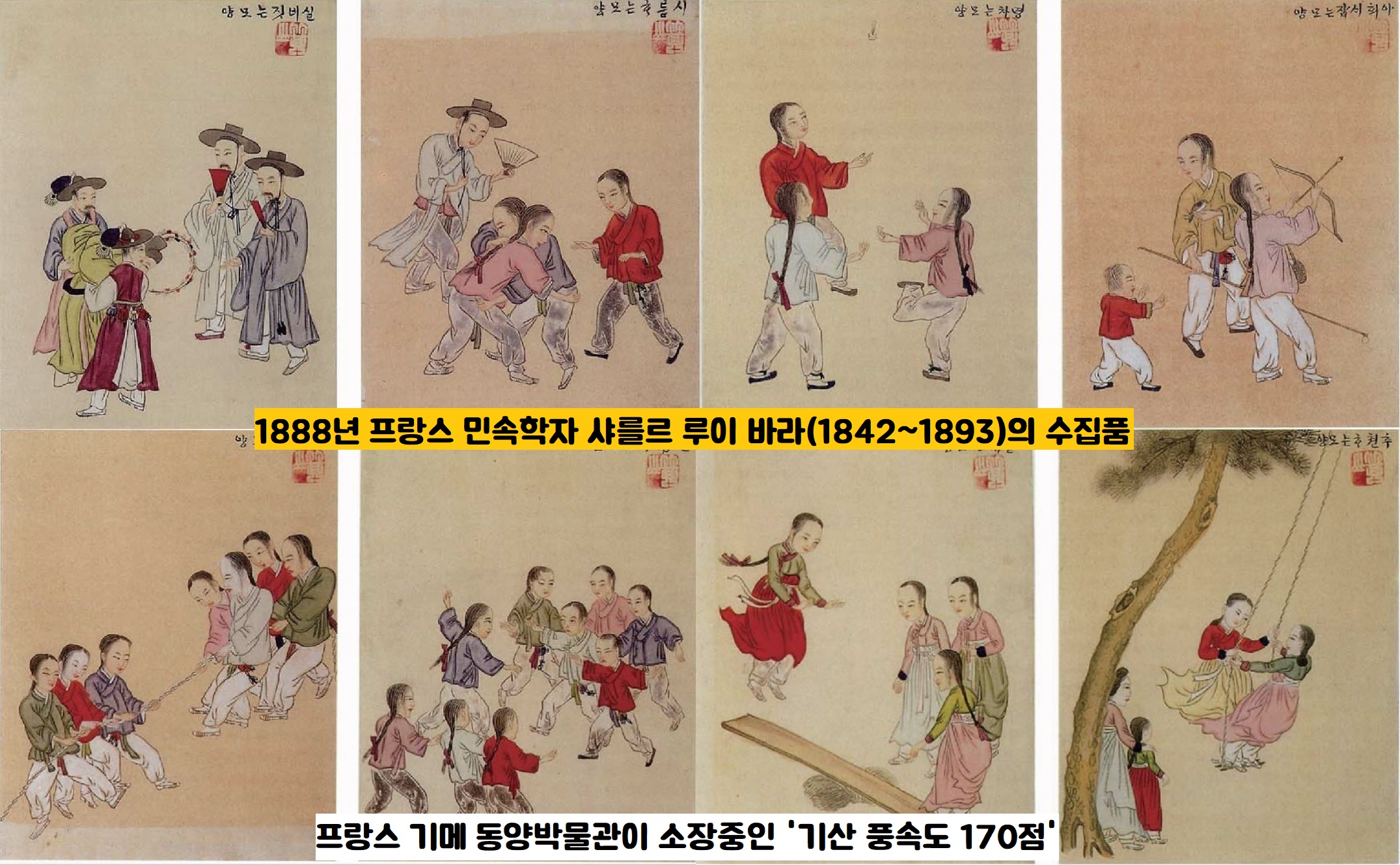 이밖에도 프랑스 민속학자인 샤를르 루이 바라(1842~1893)의 ‘기산 풍속도’ 170점(기메 동양박물관)도 유명합니다.
