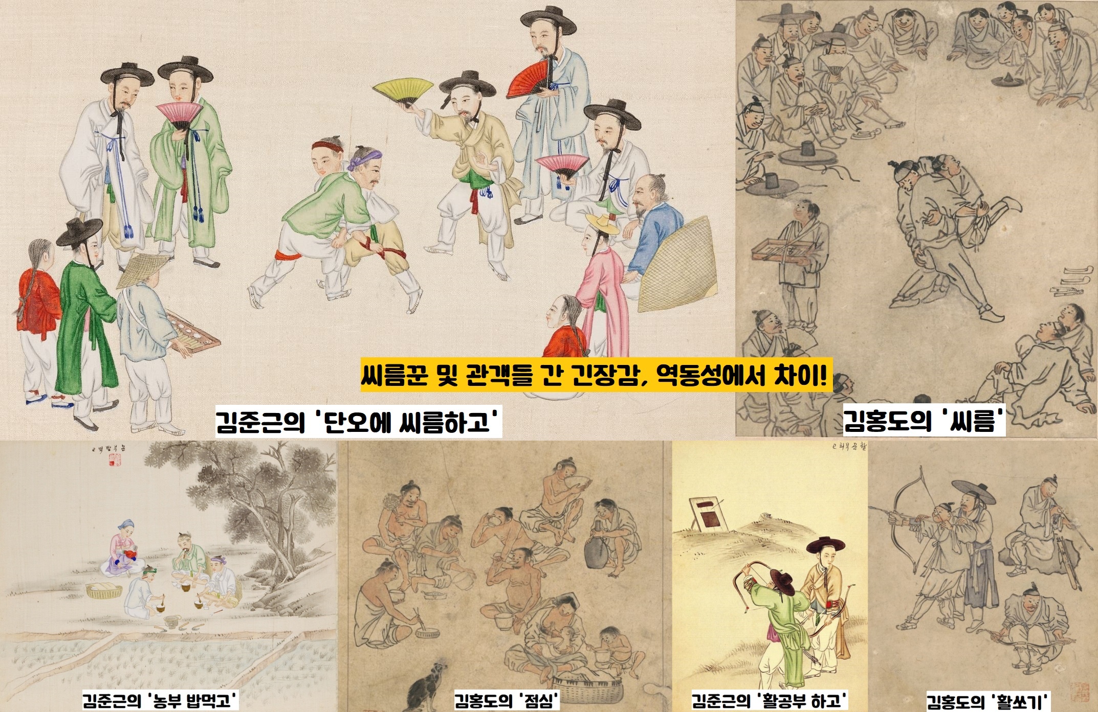 우선 기산과, 풍속화가의 레전드인 단원 김홍도의 작품을 비교해볼까요.