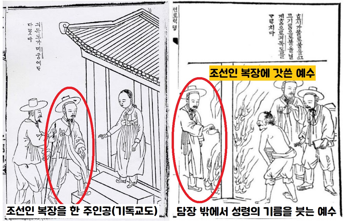 당시 개신교에서는 토착민들의 문화와 정서에 대한 존중을 바탕으로 한 네비우스 선교정책이 많은 영향을 끼쳤거든요, 덕분에 이 기산의 삽화는 독자들에게 <천로역정>의 내용을 쉽게 전달되도록 도와주는 효과를 주었답니다.