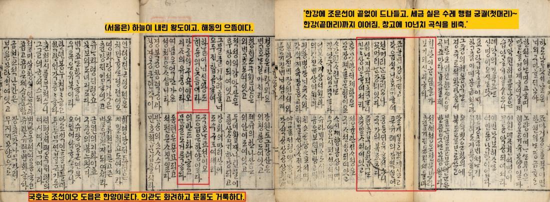 행사에 발맞춰 <한양가> 학술대회까지 열렸으니 이 기회에 <한양가>를 한번 소개해보고자 한다. 사실 <한양가>는 한글 가사라지만 워낙 고어체인 탓에 일반인들은 여전히 접근하기 어렵다.