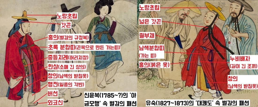 그랬다. 별감은 짝궁인 기녀와 함께 당대 조선의 패션리더였다. 무엇보다 왕와 왕비, 세자를 지근거리에서 지킨 이들이었으니 거개가 헌헌장부(軒軒丈夫)였을 것이다. 게다가 별감의 ‘시그니처’는 멀리서도 돋보이는 홍의(붉은 옷)였다.