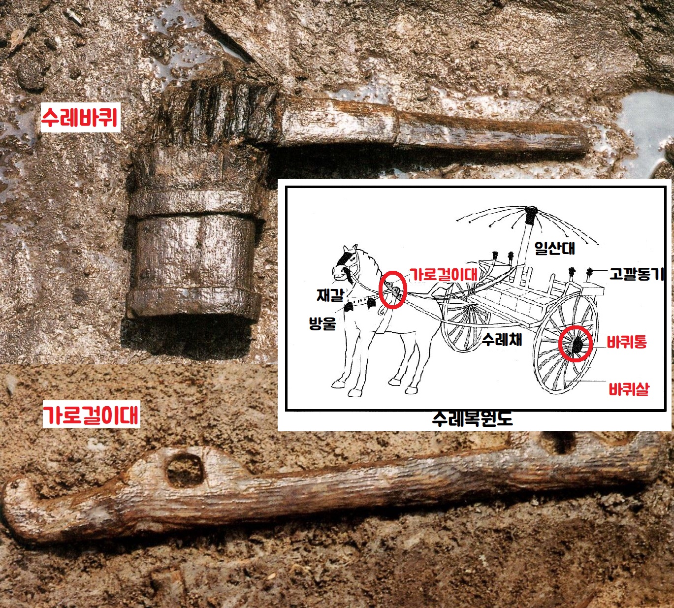 기원전 1세기 무렵 제작된 이러한 생활도구가 처음 모습을 드러낸 것이다. 가만 생각해보면 불과 얼마 전까지 주변의 농촌마을에서 흔히 볼 수 있었던 생활용기이기도 하다. 당대의 농사 및 생활 도구의 제작 기술이 2000년 이상 큰 변화없이 이어질만큼 뛰어났다는 사실을 알 수 있다. 수레의 부속품인 수레바퀴축·바퀴살·가로걸이대 등도 출토되었다.