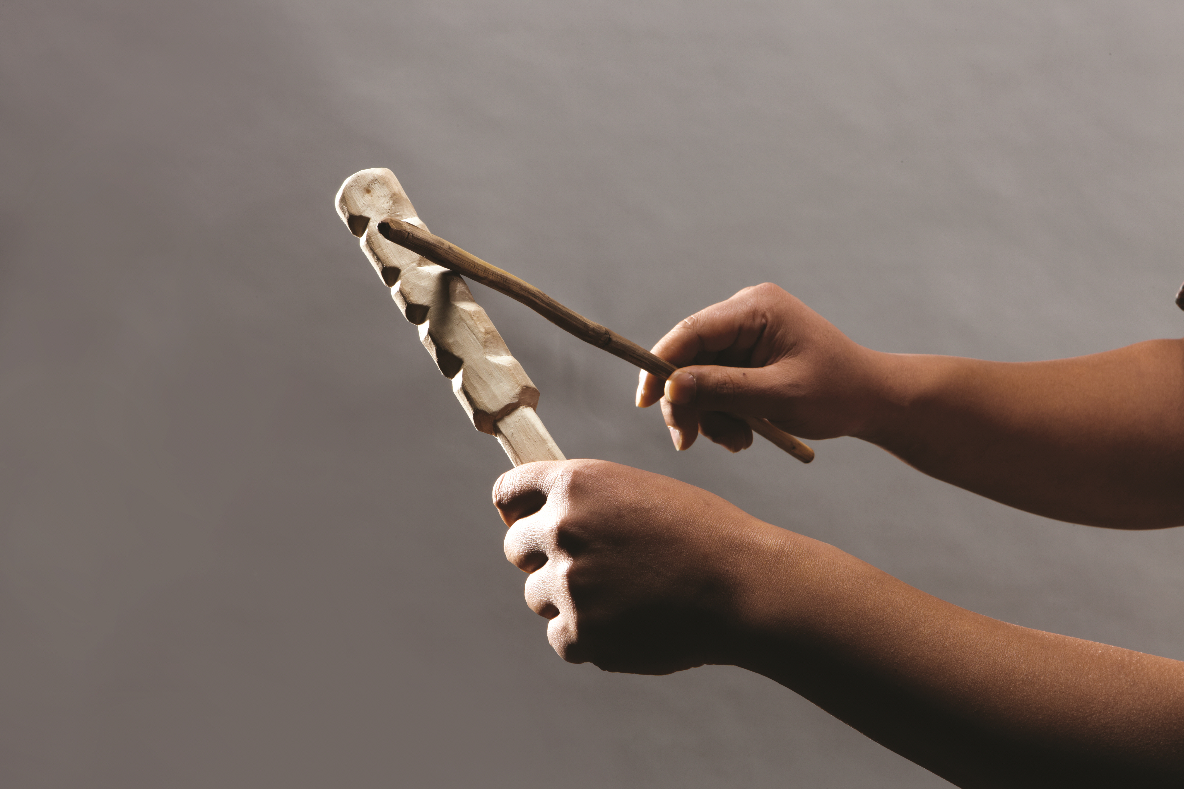 이 찰음악기는 각목에 새겨진 ‘톱니 무늬’를 마찰해서 소리를 내게 하는 타악기였다. 마찰봉의 형태와 마찰의 속도에 따라, 혹은 각목의 깊이와 간격에 따라 다양한 소리를 냈을 것이다.