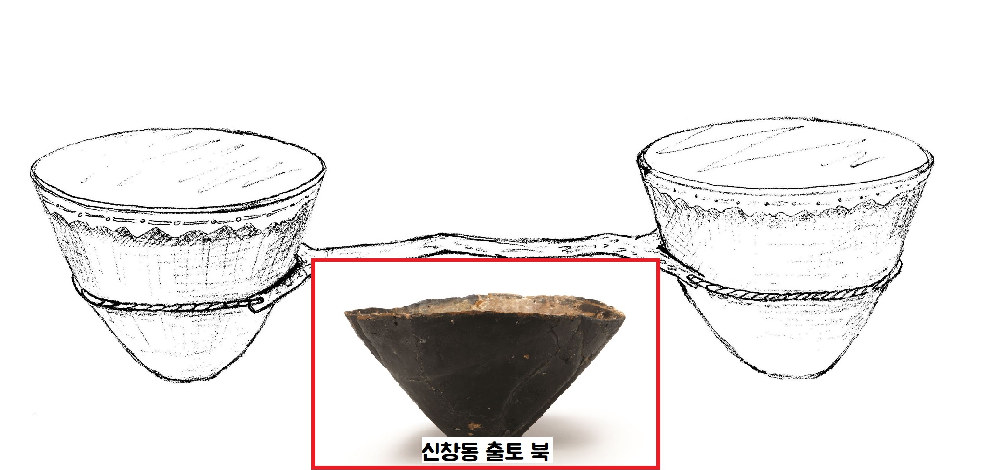 경산 임당동(높이 67㎝, 너비 27㎝)과 창원 다호리 3점(높이 56,4~64.5㎝, 너비 28.5~30㎝) 등과 신창동 출토품(높이 77.2㎝, 폭 28.2㎝)은 크기는 다소 차이가 있었다. 그러나 제작시기(기원전 1세기 무렵)과 악기의 형태가 매우 흡사했다.